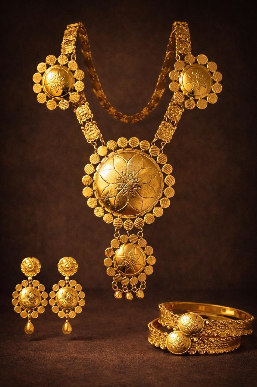طقم ذهب ملكي بتصميم تراثي يعكس روح الأصالة والفخامة في أدق تفاصيله.