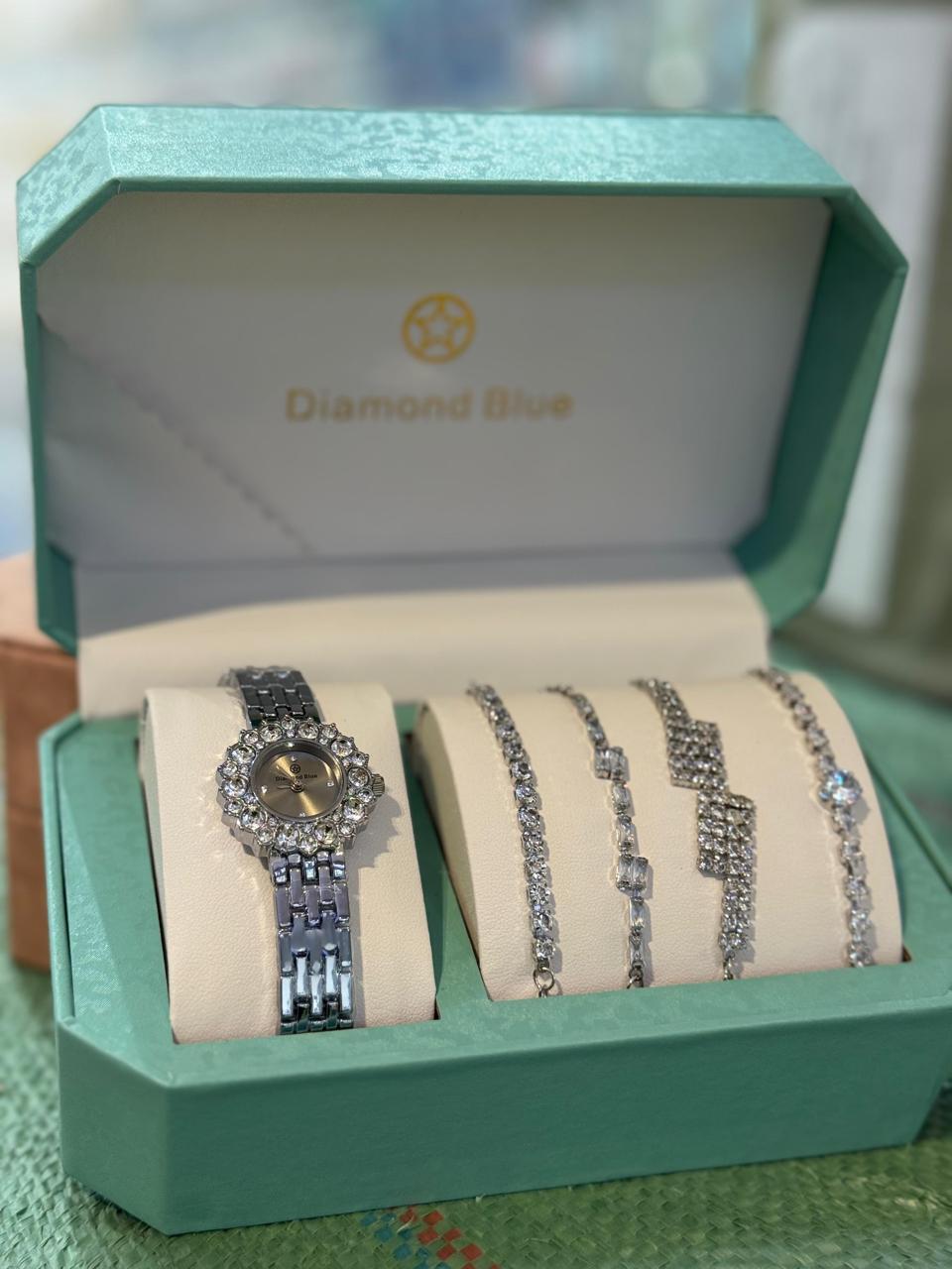 أناقة راقية تجمع بين الساعة + الأساور + الخواتم في علبة هدية ملكية
