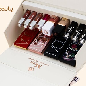 المجموعة تبدو كهدية متكاملة لمحبي المكياج، تجمع بين منتجات أساسية للوجه والشفاه.