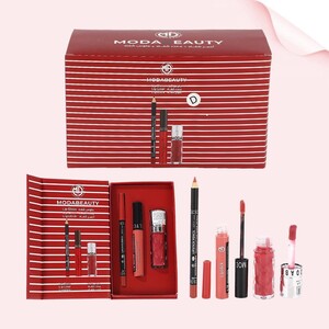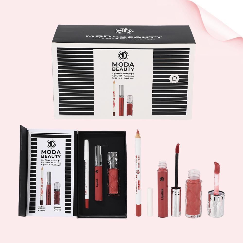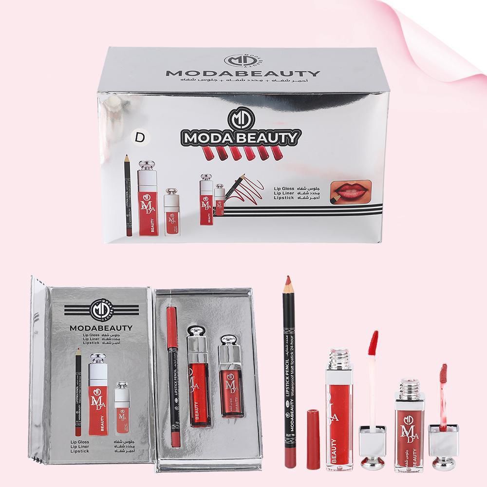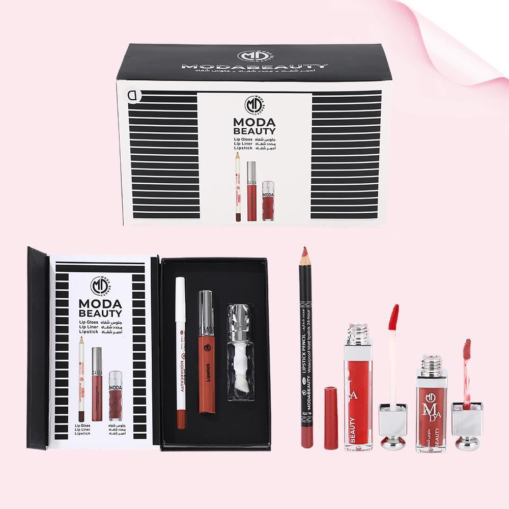 طقم الجمال المتكامل – MODABEAUTY Lip Collection استمتعي بإطلالة شفاه مثالية مع مجموعة MODABEAUTY الفاخرة التي تجمع بين الأناقة والجودة في علبة واحدة. الطقم مصمم ليمنحك لونًا جذابًا وثباتًا طويلًا مع ترطيب طبيعي للشفاه. محتويات المجموعة: أحمر شفاه لون أنيق