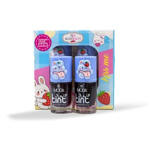 -درجتين مختلفتين من الأحمر الداكن، مع عينات لونية فوق الزجاجة توضح اللون النهائي على الشفاه (أحمر فاتح وأحمر داكن). يعطي لونًا دائمًا للشفاه ويستخدم كجزء من المكياج. المنتج مناسب للاستخدام اليومي لإضافة لون جميل ودائم للشفاه