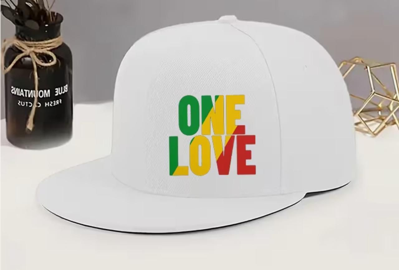 ارتقِ بإطلالتك اليومية مع قبعة ONE LOVE البيضاء بتصميمها العصري الأنيق. تجمع هذه القبعة بين البساطة والجرأة، حيث تتوسطها عبارة ONE LOVE بألوان الأخضر والأصفر والأحمر، لتجسد روح الإيجابية، الوحدة، والحب.
